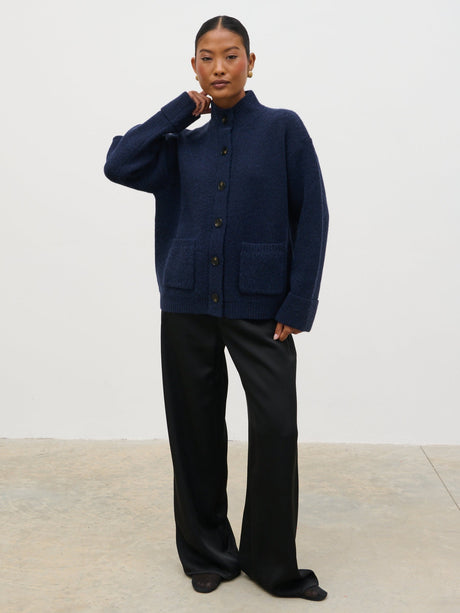 Leighton High Neck Knit Cardigan - Deep Beige Marl